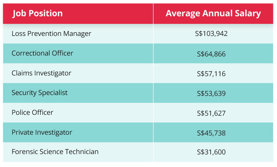 • Postgraduate pathways in Law, Public Policy, Social Work, Psychology, or Specialised Criminal Justice Programmes in Singapore or overseas.